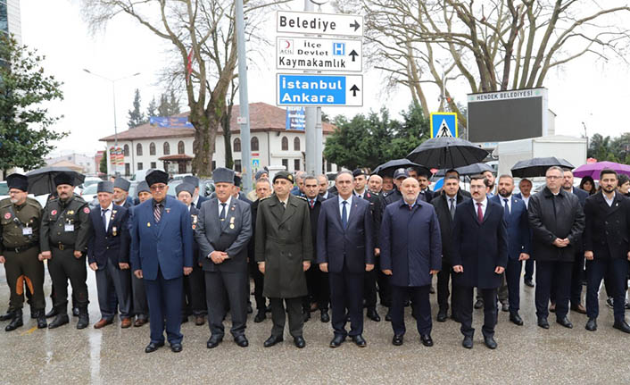 18 Mart Şehitleri Anma Günü ve Çanakkale Deniz Zaferi’nin 110. yıl dönümü Cumhuriyet meydanında Atatürk anıtına çelenk sunumuyla başladı. Törene Hendek Kaymakamı Halil İbrahim Acır, Hendek Belediye Başkanı İrfan Püsküllü, Hendek Cumhuriyet Başsavcısı Ayhan Yenilmez, Garnizon Komutanı Müh. Alb. Özgün Özbal, Hendek İlçe Emniyet Müdürü Kemal Aydınoğlu, Hendek İlçe Jandarma Komutanı J. Ütğm. Bahtiyar Beycur, Hendek İlçe Askerlik Şubesi Başkanı Mehmet Kaplaner, Siyasi Partilerin İlçe Başkanları, Türkiye Muharip Gaziler Derneği Hendek Temsilciliği, Kuvay-i Milliye ve Mücahitler Derneği, Hendek Muhtarlar Derneği, Daire Müdürleri, Öğretmenler, Öğrenciler ve vatandaşlar katıldı.