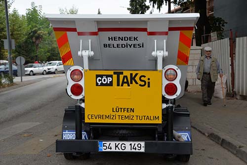 Çöp Taksi uygulamasının özellikle çarşı merkezinde hizmet vereceğini söyleyen Başkan İrfan Püsküllü, "Şehrin temizliğini kısa sürede sağlamayı hedefliyoruz. Biz Hendek Belediyesi olarak ne kadar temizlik faaliyeti yaparsak yapalım asıl olan kirletmemektir. Düşünün, siz bir yere çöp bıraktınız. Biz geldik aldık. Biz aldıktan sonra siz yine bıraktınız. Sonuç çöp, sonuç kirlilik… Bu şehir hepimizin, gelecek nesillere temiz bir çevre temiz bir Hendek bırakalım”dedi.