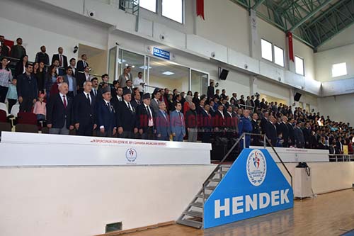 Saygı Duruşu ve İstiklal Marşı’nın okunmasının ardından Sakarya Vali Yardımcısı Mehmet Fatih Çiçekli ve Hendek Belediye Başkanı İrfan Püsküllü, Öğrencileri ve halkı selamladı.