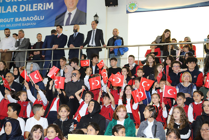 Hendek Yeni Spor Salonu’nda gerçekleşen Cumhuriyetin 99. yılı kutlamaları Saygı duruşu ve İstiklal Marşı okunmasıyla başladı. Hendek Kaymakamı Halil İbrahim Acır’ın günün anlam ve önemini belirten konuşmasının ardından Hendek Atikehanım Anadolu Lisesi, Orhangazi Anadolu Lisesi ve Akşemsettin Mesleki ve Teknik Anadolu Lisesisi öğrencileri tarafından Cumhuriyet Bayramı ile ilgili şiirler okundu.