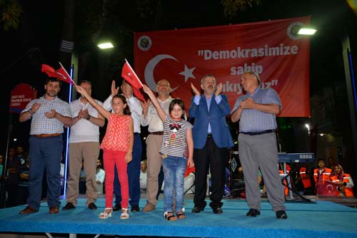 Sakarya Büyükşehir Belediye Başkanı Zeki Toçoğlu da konuşmasında “ 22 Gün önce ordumuzun içinde yuvalanan eşkıyaların, Devletimize el koyma harekatını hep birlikte durdurduk. Bu meydanların bu madana çok büyük önemi vardır. Tarih bu meydanları, bu direnişi mutlaka şanlı sayfalarında yazacaktır. 22 gündür yorulmadan bu meydanları doldurdunuz, Sayın Cumhurbaşkanımıza güç verdiniz. Cumartesi günü de Demokrasi Meydanında final yapıyoruz. Yoğun katılımla Ankara’ya Sayın Cumhurbaşkanımıza seninleyiz, yanındayız, beraberiz mesajı vereceğiz “ Dedi.