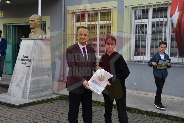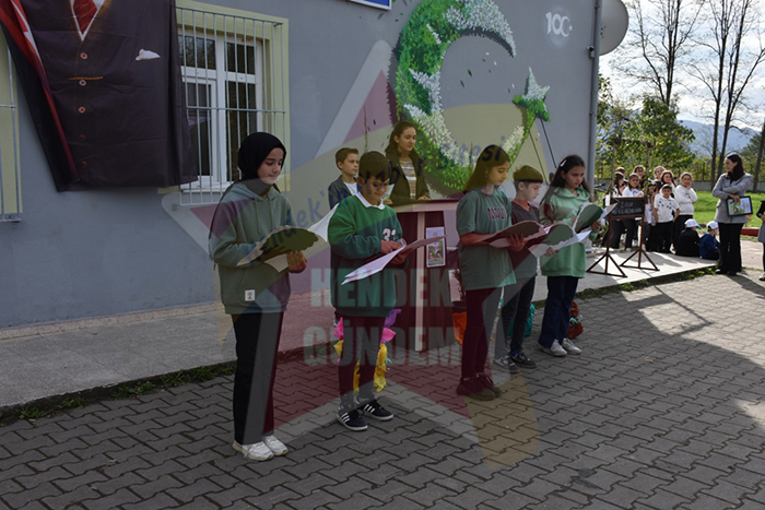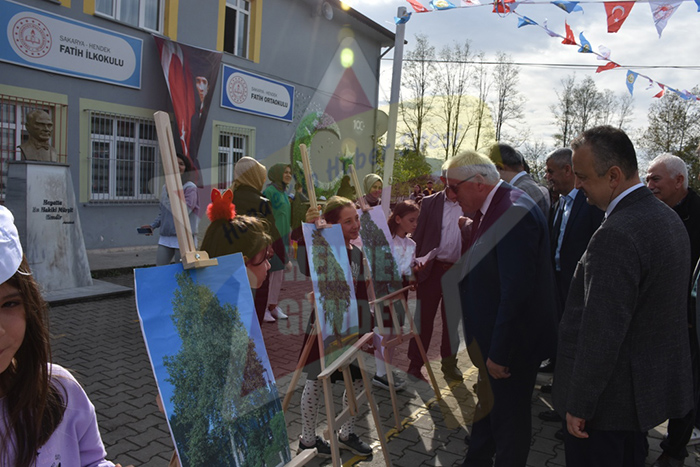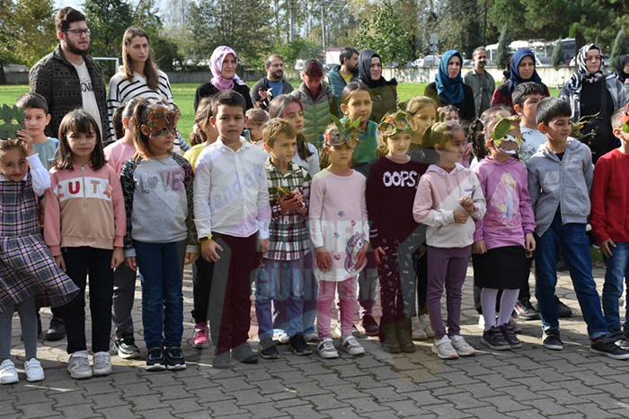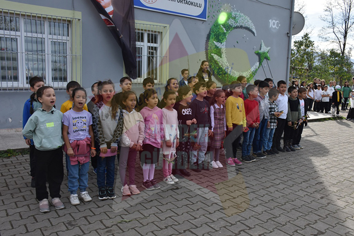 Öğrenciler şarkılar, şiir ve hazırladıkları sergi ve şiir okuma yarışmasına katılan öğrencilere verilen ödüllerden sonra okul bahçesine fidanlar dikildi.