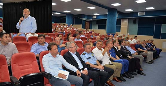 Hendek Belediyesi Rasimpaşa Sinema Salonu’nda gerçekleşen toplantıya Kaymakam Orhan Burhan, Hendek Belediye Başkanı İrfan Püsküllü, Çevre ve Şehircilik İl Müdürü Uğur Korkmaz, Hendek Muhtarlar Derneği Başkanı Emin Kula, daire müdürleri ve muhtarlar katıldı.