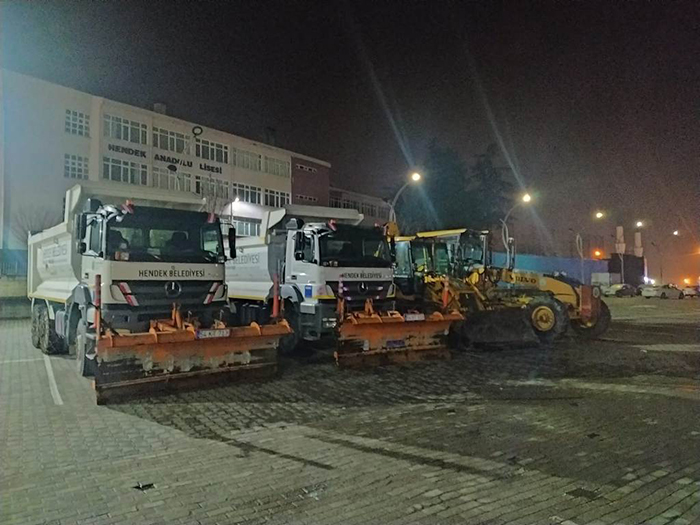 Meteoroloji Genel Müdürlüğünden gelen veriler doğrultusunda teyakkuza geçen Hendek Belediyesi ekipleri hazırlıklarını tamamladı. Günler öncesinden koordinasyon sağlayarak planlamalarını yapan Hendek Belediyesi ekipleri verilen kar alarmıyla birlikte nöbete geçti. Hendek Belediyesi toplamda 54 araç ve 80 personel ile karla mücadele çalışması yapacak. 5 grayder, 4 kar kamyonu, 5 JCB, 3 loder, Büyükşehir Belediyesine ait 2 kar kamyonu, 9 kiralık JCB ve 26 kiralık traktör ile kar timleri göreve hazır hale getirildi.