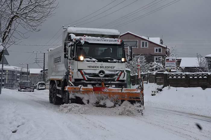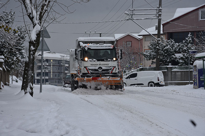 Hendek Belediyesi ekipleri, ilçe genelinde etkili olan kar yağışına karşı karla mücadele çalışmalarını aralıksız şekilde sürdürüyor.