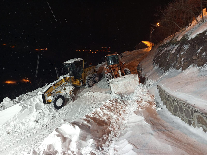 Kar yağışının günlük yaşamı olumsuz etkilememesi, ulaşımda aksamaların yaşanmaması için belediye ekipleri sahada yoğun mesai harcıyor.