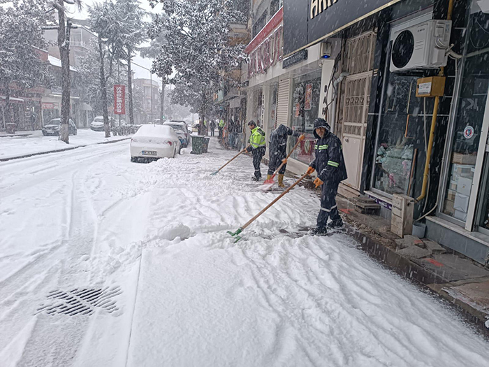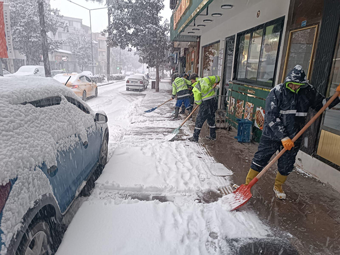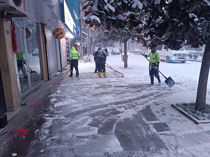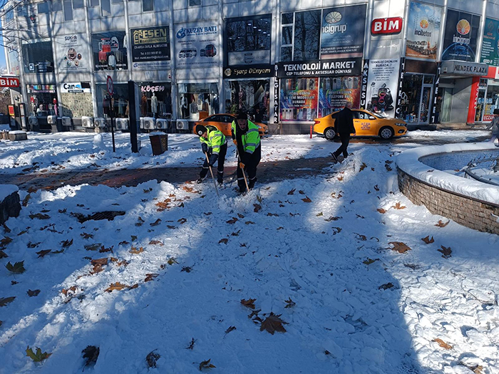 Temizlik İşleri Müdürlüğü ekipleri ise yayaların yoğun olarak kullandığı üst geçitler, yaya yolları ve kaldırımlarda kar temizleme çalışmalarına devam ediyor.