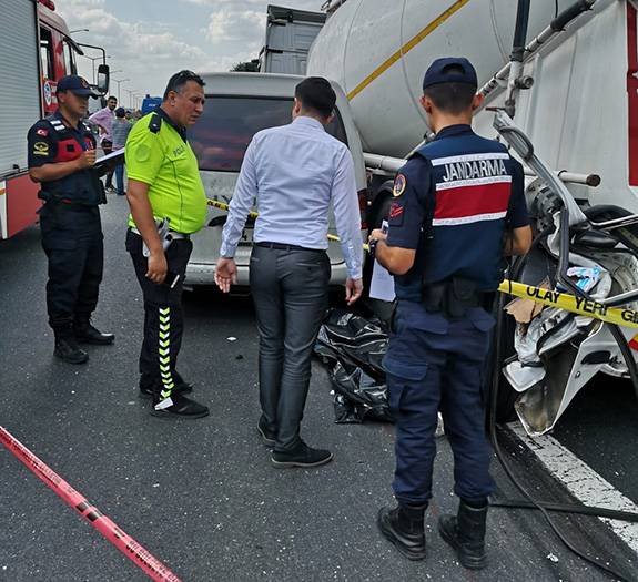 Tem Otoyolunda meydana gelen trafik kazasında çarpmanın etkisiyle kapısı kopan minibüsten düşen 1 kişi Tır ve minibüs arasında ezilerek feci şekilde hayatını kaybetti.
