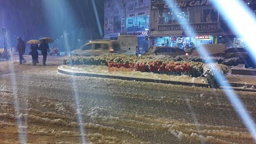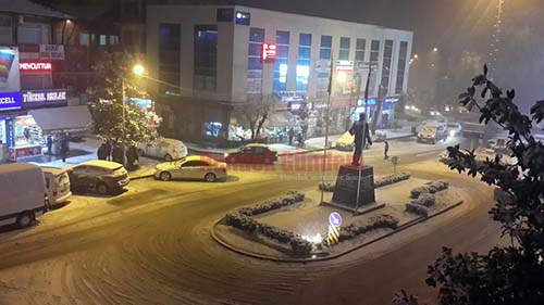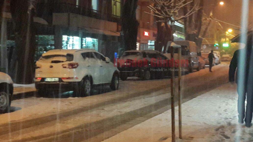 Hendek’te süren yağmur akşam saatlerinde bir anda yerini Kar’a bıraktı ve ilçe merkezi beyaza büründü.
