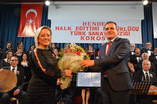 Program bitiminde Kaymakam İdris Akbıyık ve Halk Eğitim Müdürlüğü adına Cumhuriyet Başsavcısı Adem Aydemir Koro şefi Ayşen Cengiz’e çiçek takdim ettiler.