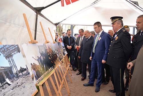 Çelenk töreni sonrası İlçe Emniyet Müdürlüğü önünde hazırlanan 15 Temmuz Şehitleri Resim Sergisinin açılışı yapıldı.