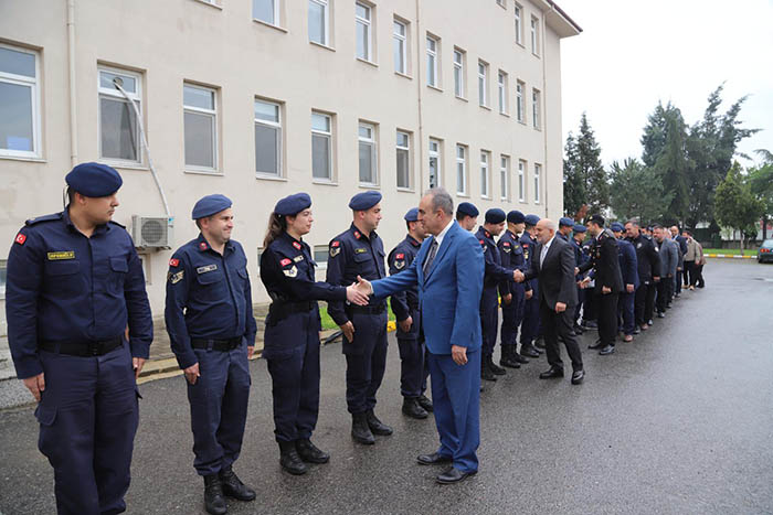 Protokol üyeleri, ilk olarak İlçe Müftülüğü görevlileri ile bayramlaştıktan sonra İlçe Emniyet Müdürlüğü ve İlçe Jandarma Komutanlığı'nda görev yapan güvenlik güçleriyle bir araya geldi.