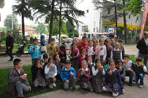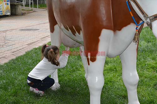 Etkinlikte inek maketi büyük ilgi gördü. İnek sağmayı büyüklerinden gören çocuklar temsili olarak inek sağarak renkli görüntülere sahne oldular.