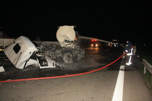 Hendek ilçesi TEM Otoyolu'nda, akaryakıt katkı maddesi taşıyan tanker ile 2 TIR’ın karıştığı kazada 2 kişi yaralandı.