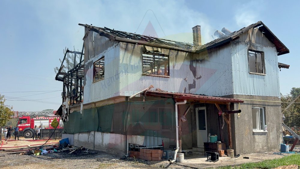 Yangın sonucu 2 katlı evin üst katı tamamen yanarak kullanılamaz hale gelirken, yangın ile ilgili inceleme başlatıldı.