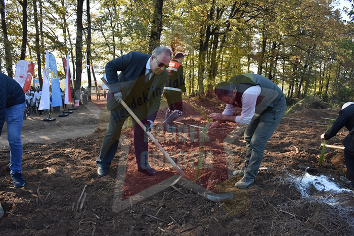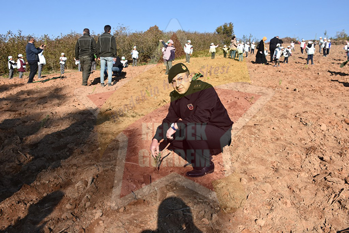 Etkinlikte konuşan Hendek Orman İşletme Müdürü Hakan Kızılaslan, Ülkemiz 78 milyon hektarlık alanıyla ekolojik bakımdan zengin bir çeşitliliğe sahiptir. Bu zenginlik içerisinde ormanlar tür ve kompozisyon olarak önemli bir yer tutmaktadır. Bu kapsamda Ülkemizin orman sahasını ve ağaç servetini çoğaltmak, erozyon kontrolünü teşvik ederek toprak, su ve bitki arasında bozulan dengeyi yeniden oluşturmak, biyolojik çeşitliliği pekiştirmek, ağaç ve orman sevgisini yaygınlaştırmak, toplumun çevreye olan duyarlılığına katkı sağlamak maksadıyla 7 Kasım 2019 tarihli, 2019/24 sayılı Cumhurbaşkanlığı genelgesi ile 11 Kasım günü “Milli Ağaçlandırma Günü” olarak kutlanması uygun görüşmüştür. Birincisi 11 Kasım 2019 günü Saat: 11.11’de 81 İl’de eş zamanlı başlatılan ve 8 saat süren bu etkinlik kapsamında 193 bin 256 dekar alanda 13 milyon 791 bin fidan toprakla buluşturularak bir rekor kırılmıştır. Ekonomik, ekolojik ve sosyal açıdan büyük öneme sahip olan ormanlarımızı korumak, sürdürülebilir şekilde yönetmek ve gelecek nesillerimiz için yurdu daha sağlıklı ve yaşanabilir kılmak amacıyla milletimizin desteği ile kutlanan Milli Ağaçlandırma günü kapsamında düzenlediğimiz fidan dikim etkinliğine katılan herkese şükranlarımı ve saygılarımı sunarım diye konuştu.