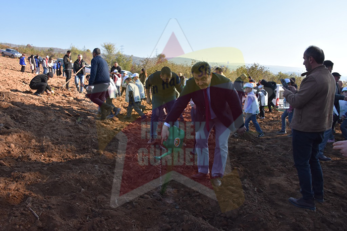 Konuşmaların ardından etkinliğe katılan misafirler hep birlikte ağaçlandırma sahasına fidan dikimi gerçekleştirerek, dikilen fidanlara can suyu verdiler.