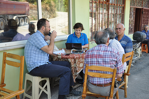 Çalışmaları kapsamında Hendek Dikmen Mahallesi’ne gelen Ayşe Nal Akçay 2009 yılında yapılan HES’lerle ilgili bölge insanından bilgiler alıyor.