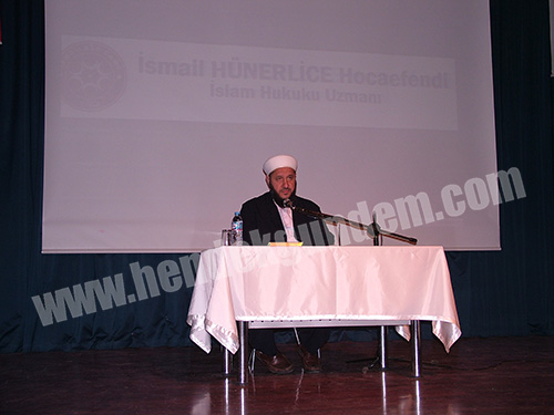 Konferansa konuşmacı olarak katılan İsmail Hünerlice , Katılımcılara İslam hukuku konulu konferans verdi.