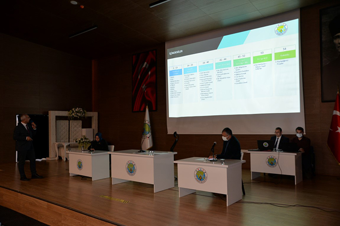 Kültür ve Sosyal İşler Müdürlüğü Nikah/Toplantı salonunda gerçekleşen mecliste Başkan Babaoğlu, slayt sunum eşliğinde 2019 Nisan ayından bu yana yapılan tüm faaliyetleri Meclis üyelerine tek tek anlattı. Göreve geldikleri günden bu yana durmadan çalıştıklarını ifade eden Başkan Babaoğlu, şeffaflık ve adil yönetimi kırmızı çizgi olarak belirlediklerini dile getirdi. Taraklı Belediyesi ile kardeş belediye olunduğu, vatandaştan gelen talepler, ihaleler, afetzedelere yönelik yapılan yardımlar, pandemi sürecinde yapılan hizmetler, sosyal yardımlarda kişi ayrımına son verilerek yapılan hizmetler, sokak hayvanlarına yönelik yapılan projeler, güçlendirilen araç filosu, şantiyesi sahası ve yemek üretim tesisini tek tek anlatan Babaoğlu, saha çalışmaları hakkında teknik bilgiler paylaştı.