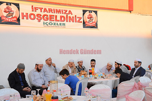 Çamlıca Mahallesi'de İçöz’lerin verdiği iftar programına Belediye Başkanı İrfan Püsküllü, AK Parti İlçe Başkanı Ali Kemal Sofu, Yönetim Kurulu üyeleri, Hendek Belediye Meclis Üyeleri, MHP Yönetim Kurulu üyeleri, İş adamları ve vatandaşlar katıldı.