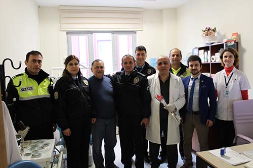 Devlet Hastanesi Başhekimi Celallettin Akyol İlçe Emniyet Müdürlüğüne bağlı personele ziyaretlerinden dolayı teşekkürlerini iletti. Doktorlarla hatıra fotoğrafı çeken emniyet personeli daha sonra hastanenden ayrıldılar.
