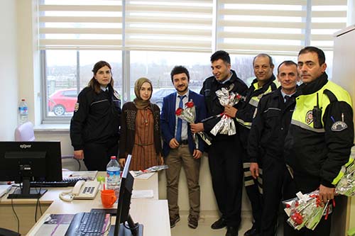 Hendek İlçe Emniyet Müdürlüğü personeli, 14 Mart Tıp Bayramı nedeniyle Hendek Hastanesi Doktorlarını ziyaret ederek, Tıp Bayramını kutladı. Emniyet personeli Başhekim Celallettin Akyol, Başhekim Yardımcısı Yavuz Selim Özdin' i makamında ziyaret ederek çiçek vererek Tıp Bayramını kutladı. daha sonra İlçe Emniyet Müdürlüğü personeli doktorların odalarını gezerek tüm doktorlara karanfil verip bayramlarını kutladılar. Emniyet Personelinin bu nazik jestleri karşısında doktorlar memnuniyetlerini dile getirdiler.