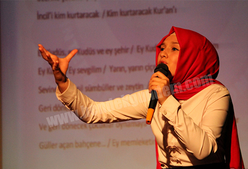 Hendek İmam Hatip Meslek Dersleri Öğretmenleri Asuman Saklı ve Sare Kübra Kenar’ın rehberlik ettiği İmam Hatip öğrencileri yoğun hava muhalefetine rağmen salonu tıklım tıklım dolduran konuklara oldukça güzel bir program sundular.