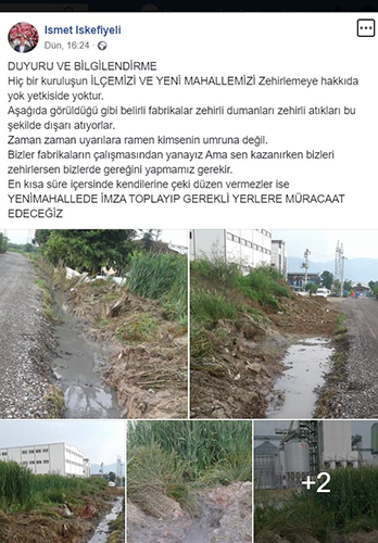Yenimahalle Muhtarı İsmet İskefiyeli Mahallede bulunan bazı Fabrikaların zehirli atıklarını dışarı attıklarını iddia ederek tepkisini dile getirdi. Muhtar İskefiyeli konu ile ilgili takibin devam edeceğini ifade ederek gerekirse Mahallede imza toplayacağını ve gereken çalışmayı yapacağını söyledi.