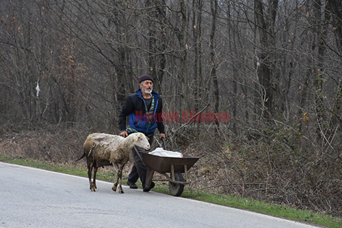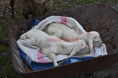 İkiz yavru yapan koyun sahibi Zekeriya tüncü tarafından el arabasına konularak Dikmen Grup yolu Elmacık düzü mevkiindeki barınağına götürmek için yola çıkardı.