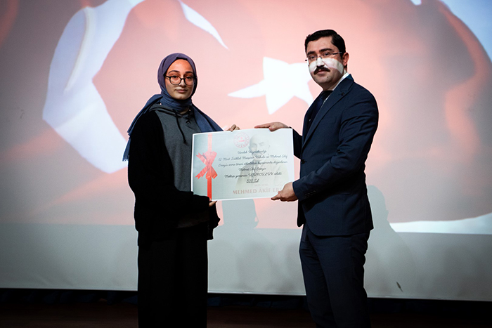 Saygı duruşu ve İstiklal Marşı’nın okunmasıyla başlayan programda öğrenciler sahnede oratoryo gösterisi sergilerken, “Mehmet Akif Ersoy’a Mektup” yarışmasında dereceye giren öğrencilere ise ödül verildi.
