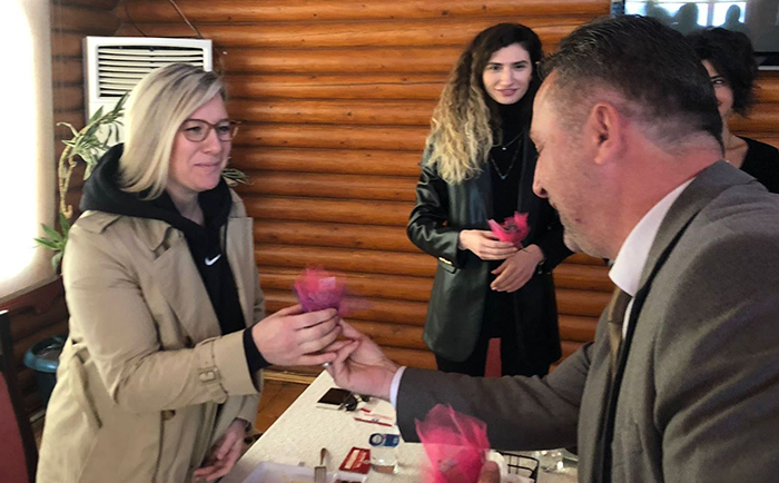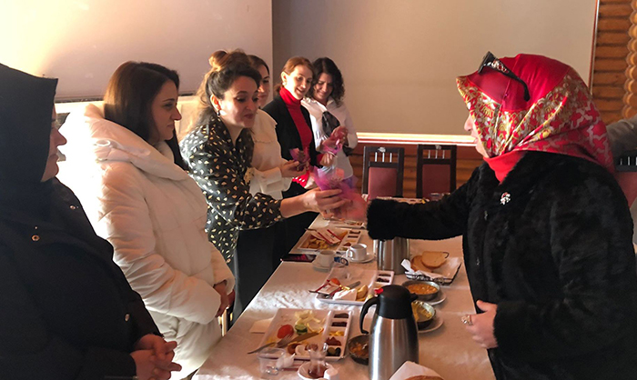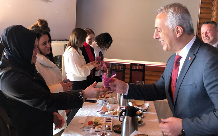 Kahvaltı programı sonrasında personellere çiçek takdim edildi. Kadın personeller ise bu güzel jest nedeniyle Başkan Babaoğlu’na teşekkür etti.