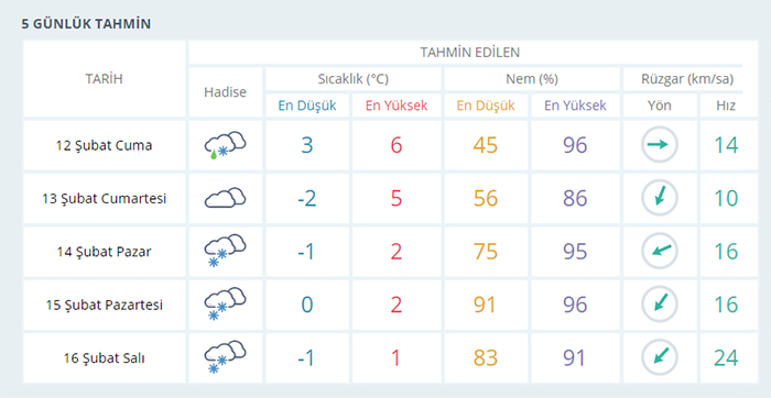 Meteoroloji Genel Müdürlüğü verilerine göre Hendek’in 5 günlük hava durumu.