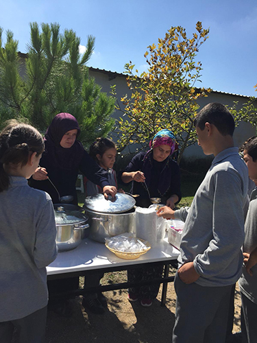 Hendek Karadere okul velilerinin yaptığı aşureler öğle arası istirahat inde öğrencilere ikram edildi.