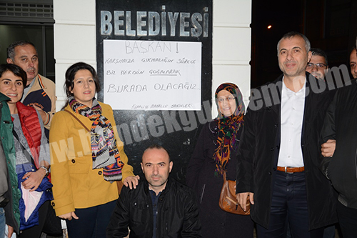 Akşam saatlerine kadara Belediye Binasında oturan Kemaliye Mahallesi halkından bir grup vatandaş hazırladıkları “Başkan,Karşımıza çıkmadığın sürece biz her gün çoğalarak burada olacağız “ yazısını Belediye girişine astı.