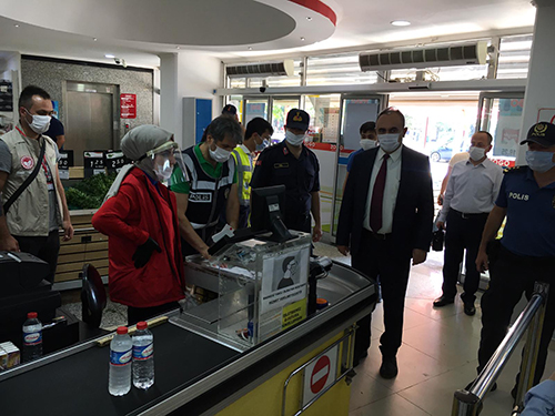 Denetimlerde Hijyen, sosyal mesafe, maske ve dezenfektan ile ilgili bilgiler verildi. Esnafların Koronavirüs tedbirlerine dikkat ettiği görüldü.