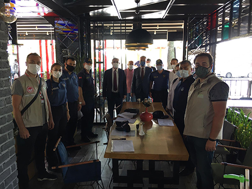Koronavirüs tedbirlerinin uygulanıp uygulanmadığını yerinde görmek amacıyla sahada olduklarını dile getiren Kaymakam Halil İbrahim Acır ve Belediye Başkanı Turgut Babaoğlu oturma alanları, sosyal mesafe, kişi sayısı ve maske kullanımına yönelik hassasiyetin devam etmesi gerektiğini hatırlattılar.
