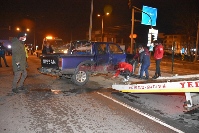 Kazanın şiddeti ile savrulan kamyonet bariyerlere çarparak yan yatarak durabilirken kaza esnasında kamyonette bulunan C.Ş., E.Ş. ve A.Ç. kazadan yara almadan kurtuldu.