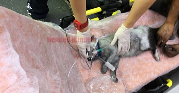 Dumandan etkilenen kedinin hayati fonksiyonlarını geri kazandırmak için yoğun çaba sarf eden 112 ekipleri kalp masajı ve oksijen yardımıyla kediyi hayata döndürmeyi başardı.