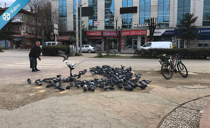 Hendek’in renkli simalarından Amigo Fatih, sokağa çıkma yasakları nedeniyle İlçe Merkezinde bulunan kuşları besledi.