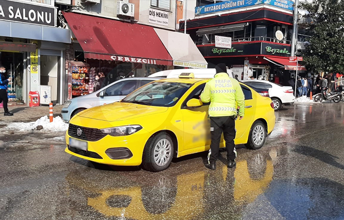 Hendek İlçe Emniyet Müdürlüğüne bağlı Trafik ekiplerinden kış lastiği ve koronavirüs denetimi.