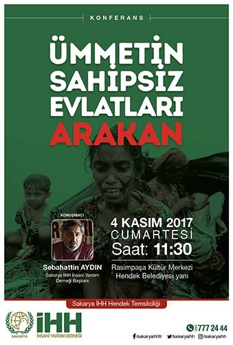 Sakarya İHH Hendek Temsilciliğinin 4 Kasım 2017 Cumartesi günü saat 11:30’daRasimpaşa Kültür merkezi salonunda düzenleyeceği Ümmetin Sahipsiz Evlatları konulu konferansa konuşmacı olarak Sebahattin Aydın katılacak.