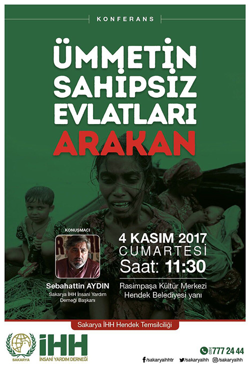 Sakarya İHH Hendek Temsilciği tarafından “Ümmetin Sahipsiz Evlatları Arakan” adlı konferans düzenlenecek.