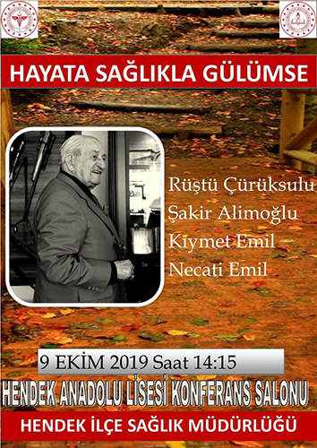Hendek Anadolu Lisesi Konferans Salonu’nda ‘Hayata Sağlıkla Gülümse’ paneli düzenlendi. Hendek İlçe Sağlık Müdürlüğü tarafından öğrencileri bilinçlendirmek için düzenlenen panelin konuşmacıları Rüştü Çürüksulu, Şakir Alimoğlu, Kıymet Emil ve Necati Emil’di. Saat; 14.15’de başlayan panelde gençler bilgilendirilirken bir anda emekli öğretmen Kıymet Emil yere yığıldı.