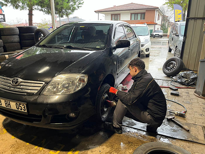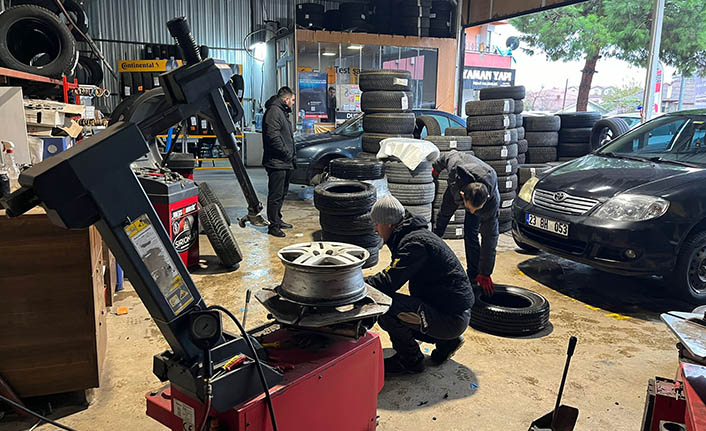 Yağışların başlaması ile birlikte kış lastiklerini araçlarına taktırmak isteyen sürücüler lastikçilerin yolunu tutarken lastikçilerde yoğunluklar oluşmaya başladı.
