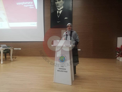 Başkan Bedia Yılkın kısa bir konuşma yaparak katılımcıları selamladı. Başkan Yılkın; “ Ülkemizde son yıllarda maalesef madde bağımlılığı çok küçük yaşlara düştü. Aileler, STK’ lar ve eğitim kurumları el ele vererek, madde bağımlılığıyla mücadele etmelidir. Madde bağımlısı çocuklar bizim geleceğimiz ve bizim evlatlarımız. Bu çocukları ele ele vererek bu bataktan kurtarmalıyız. Çocuklarımızın spor, kültürel aktivitelerle sosyalleşmesini sağlamalıyız. Hendek ilçesi bu konuda epey yol aldı. Son olarak Ömer Faruk Ateş, Avrupa Karate Şampiyonu olarak bizi gururlandırdı. Bu duygu ve düşüncelerle konferansa katılım gösteren herkese teşekkür ederim” Dedi.