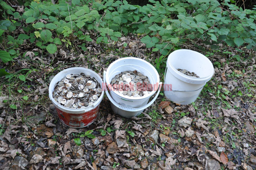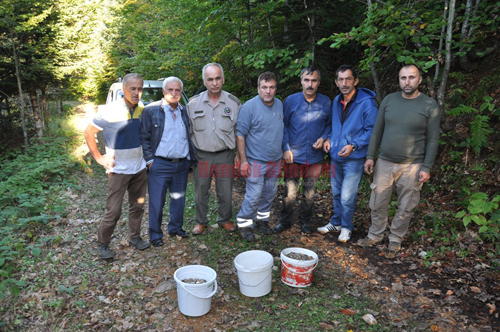 Mantar toplamak için getirdikleri kovalara buldukları bozuk paraları toplayan Muhtar ve beraberindeki Vatandaşlar yaklaşık üç kova dolusu 1 TL’lik madeni para topladı.