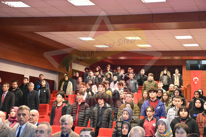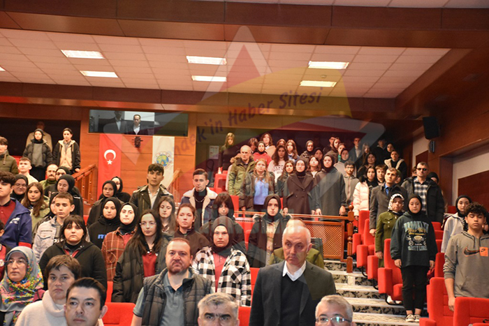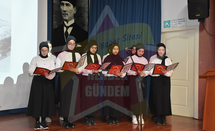 Meslek Dersleri Öğretmeni Kadir Bilgiç günün anlam ve önemi ile ilgili konuşmasında, İstiklal marşımızın 102. yılı için buradayız, bu vesileyle milli şairimiz Mehmet Akif Ersoy’un hep birlikte anmış olacağız. Kurtuluş savaşı yıllarında ülkemizin sıkıntılı durumuna bakarak şu mısraları dile getirmiştir “Arnavutluk ne demek, varmı şeriatte yeri küfrolur başka değil kavmimi sürmek ileri benden duyunuz evet belki arnavudum başka bir şey diyemem işte perişan yurdum” dizelerine yer verdi. Akif’in İlk öğretmeni Babsıdır ondan çok şey öğrendiğini bizzat kendisi söylemiştir ifadelerine yer verdi.