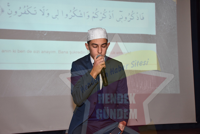 Saygı duruşu ve İstiklal marşının okunmasıyla başlayan program Hendek Anadolu İmam Hatip Lisesi öğrencisi Enes Bilgiç’in Kur’an-ı Kerim tilaveti ile devam etti.