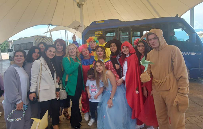 “ Renklere yolculuk “ etkinliğinde rüzgar gülü objeleri ile yaşlılar ve down sendromlu çocuklar kostüm giymiş gençlerle unutulmaz anlar yaşadılar.